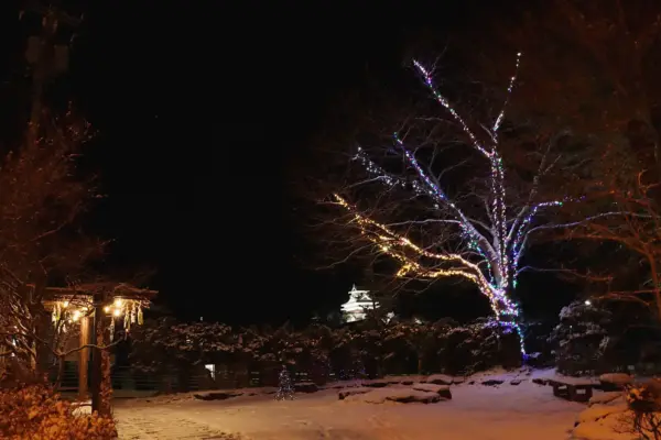 民間と行政が協力してイルミネーション設置、かみのやま温泉駅近くの小さな公園で来年2月まで しだれ桜のライトアップも